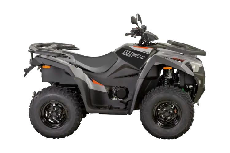 The Kymco MXU 550i EPS is a full-size utility ATV featuring a DOHC 501cc engine, electric power steering, 2,500 lb winch, selectable 2WD/4WD with differential lock, and fully independent suspension.
