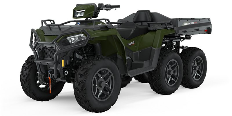 The Polaris Sportsman 6x6 570 is a six-wheel-drive ATV with a dump box, delivering 44 HP and 1,500 lb towing capacity with unmatched traction for work and extreme terrain.